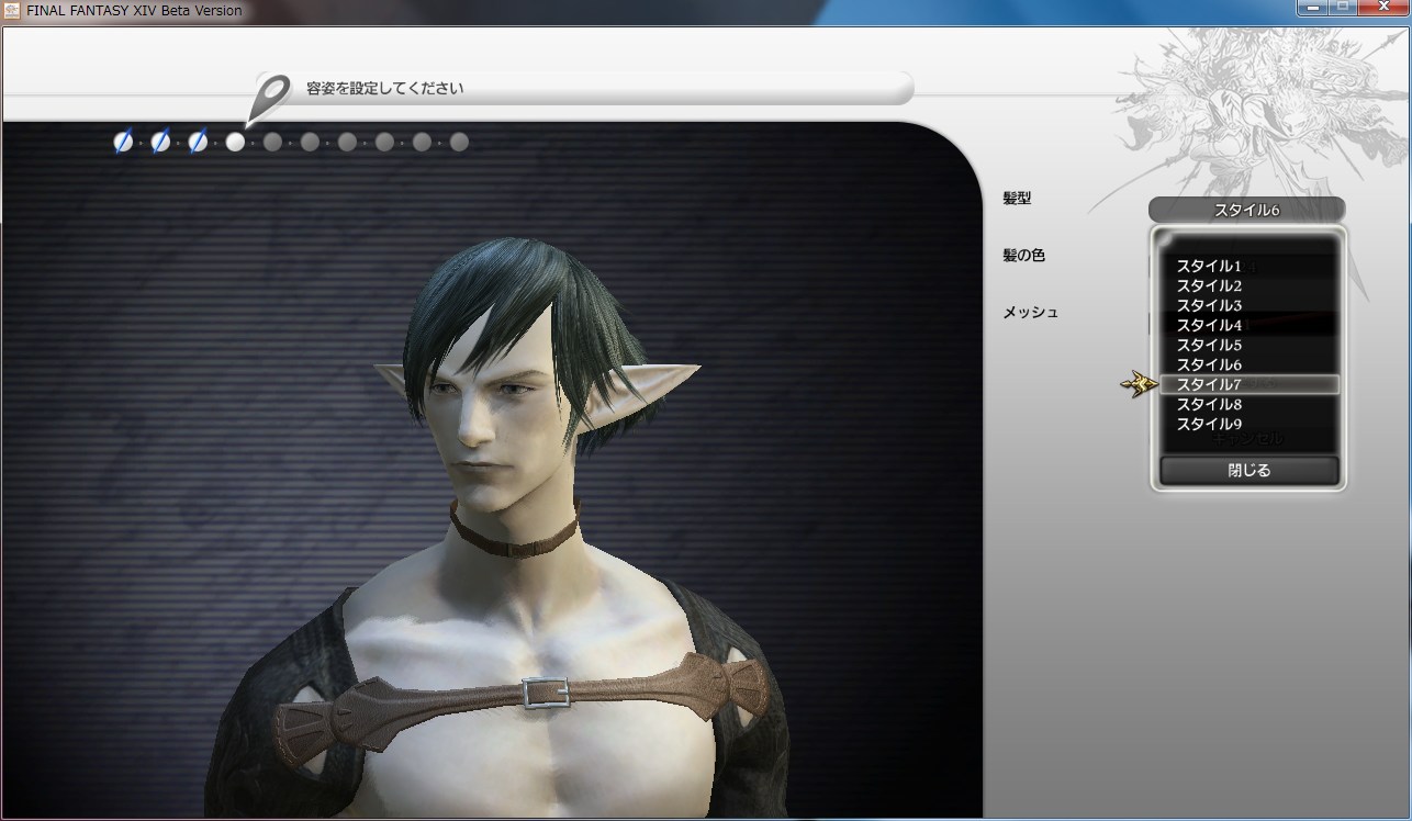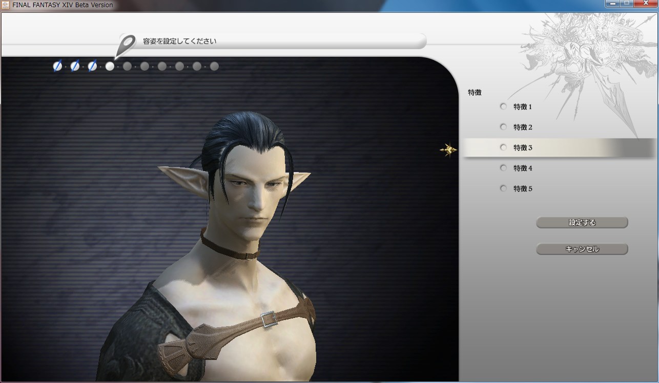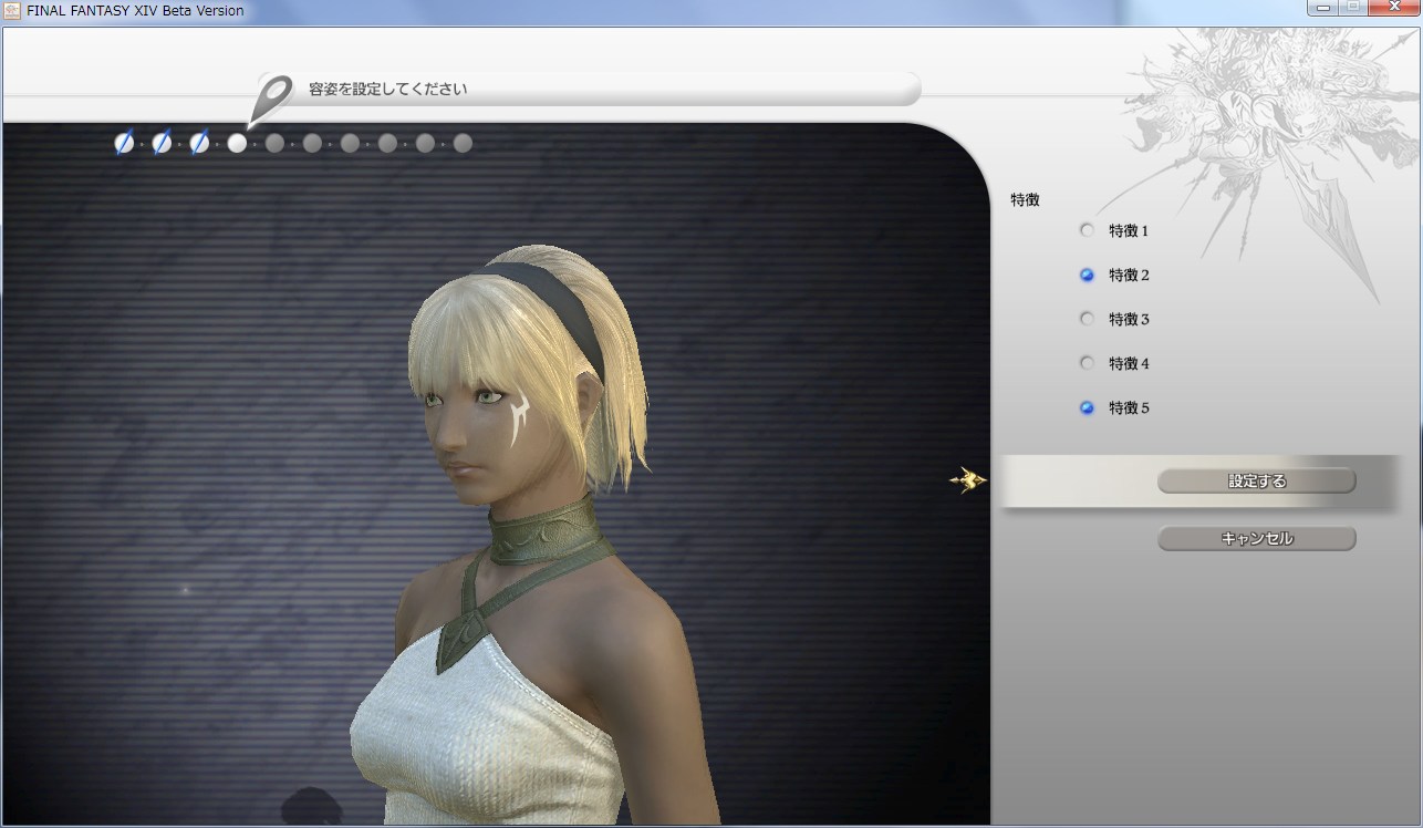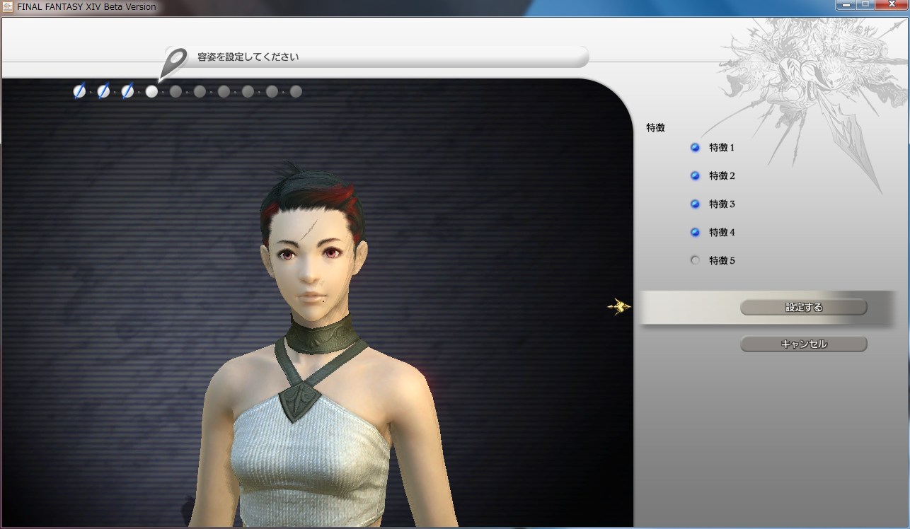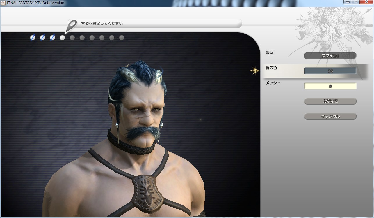 顔のパターン、髪、眼などとにかく選択肢の多いFF14 のキャラクター作成。
